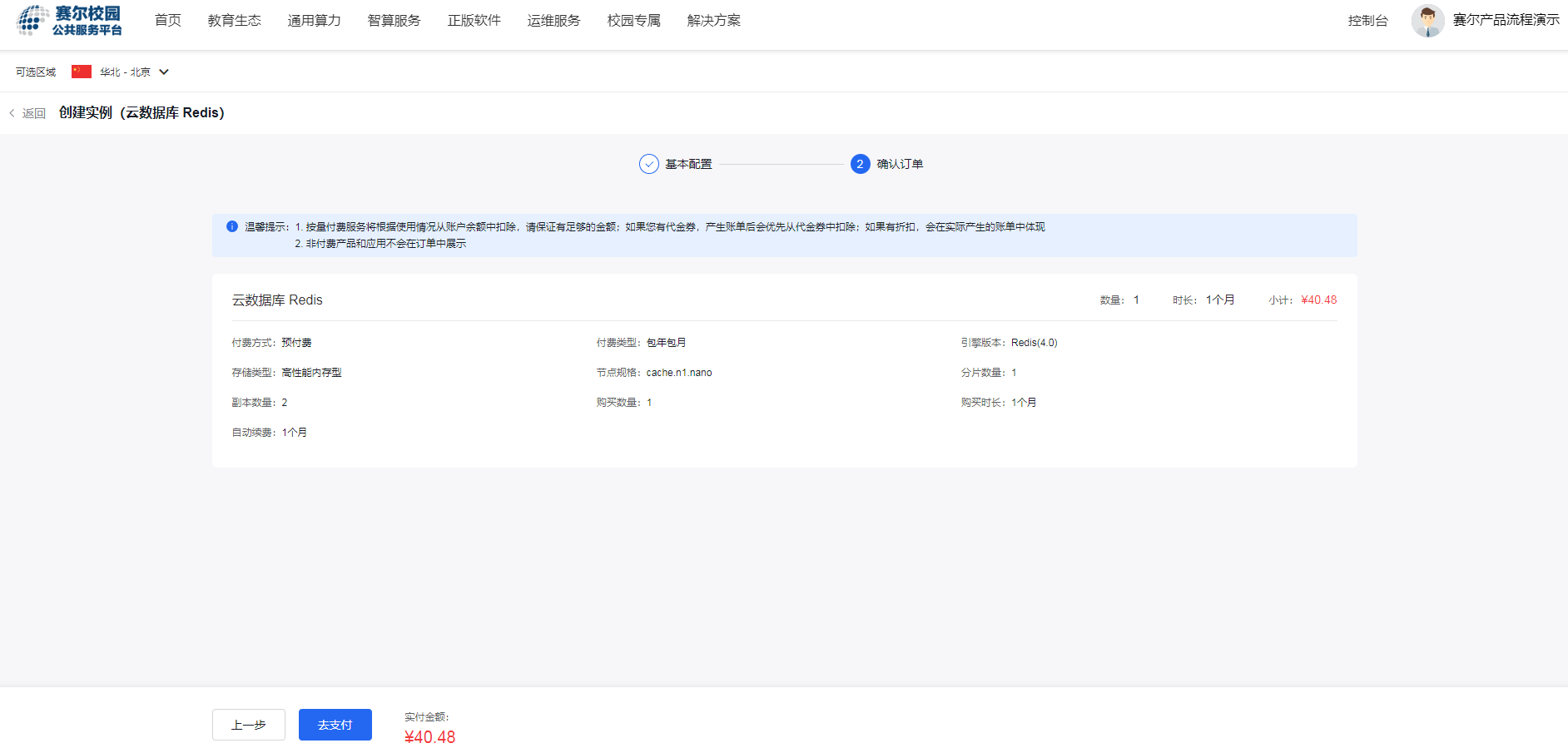不同的计费模式(按量付费、包年包月),如选择的是包年包月模式,购买页面会展示订单总金额;如选择的是按量付费模式,则显示每小时单价。